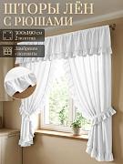 Шторы льняные 150 на 275 см -2 шт с рюшами