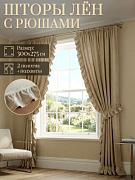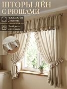 Шторы льняные 150 на 275 см -2 шт с рюшами бежевые
