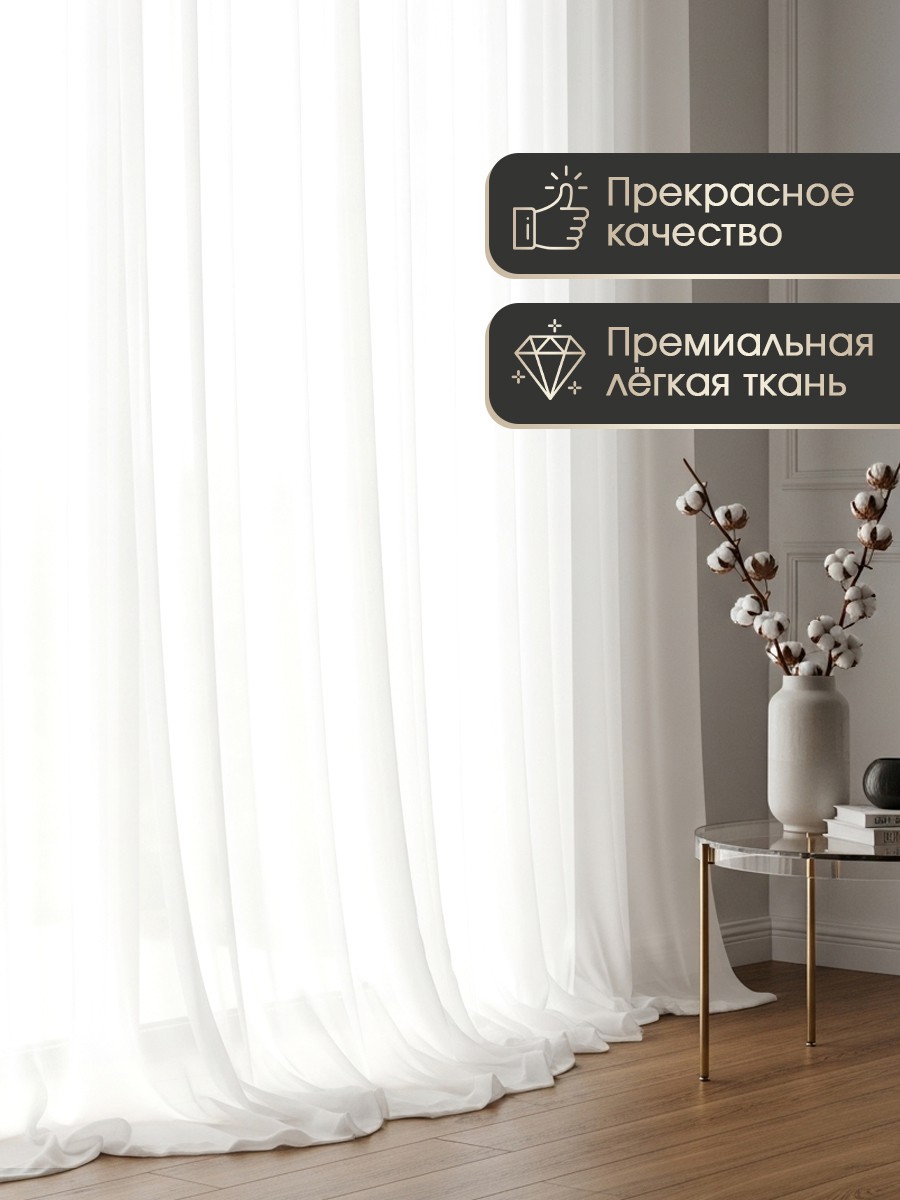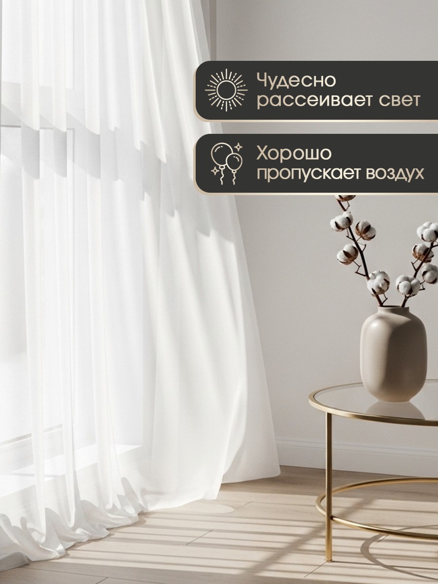 Тюль вуаль на люверсах — элегантный выбор для современного дома. Готовый тюль из плотного 100% полиэстера не мнется и держит форму. Одно полотно 400х260 см со серебристыми люверсами диаметром 3,5 см легко крепится на карниз (штангу, трубу). Занавеска формирует красивые мягкие складки. Тюль на люверсах отлично пропускает воздух и мягко рассеивает свет, создавая уют. Тюлевая шторка украсит окно в гостиной, зале, спальне, детской или на кухне. Этот широкий и длинный тюль можно использовать один или с портьерами. Он идеален для стилей прованс, скандинавский и минимализм. Тюль вуаль на кольцах дает красивую объемную драпировку с коэффициентом 2-2.5. Занавески и тюлевые шторы из вуали просты в уходе и дарят комфорт. Гардины с люверсами — это стильное и практичное решение для интерьера, а также отличный подарок на свадьбу или новоселье.